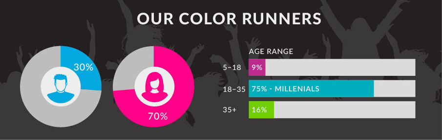 The Color Run, also known as the Happiest 5k on the Planet, is a unique paint race that celebrates healthiness, happiness, and individuality. Now the largest running series in the world, The Color Run has been experienced by over 6 million runners worldwide in 35+ countries.